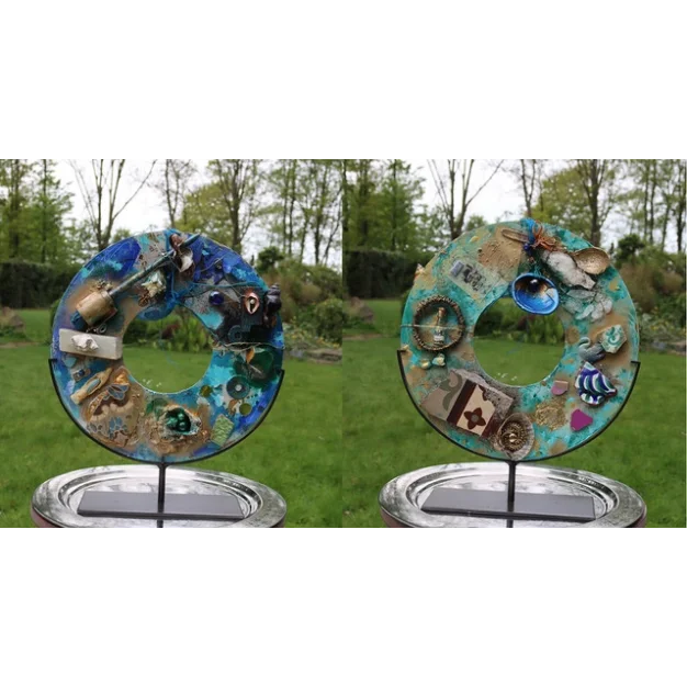 At The Seashore - Fragrance of Reconciliation is a Power Circle. The wooden circle is adorned by many meaningful objects. You see verso and recto of this artwork. More info on Madama Click HERE