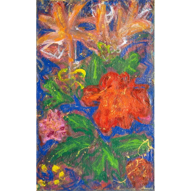 Drieluik/Triptych Les Fleurs de Bonheur nr. 2, One painting is 137 x 82, 5 cm, 2022. Want to know more about Madama check her website madama.nl