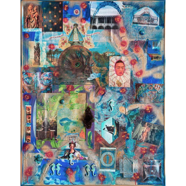 Collection Tradition d'Ateliers, La Strada per il Cielo, mixed media, collage 90 x 70 cm, 1998-2021, nr 5 1275 euro. Ho fatto collage per tutta la vita, questa è una serie speciale Collection Tradition d'Ateliers in cui ho usato molti oggetti che ho raccolto nel mio studio nel corso degli anni fino a quando si sono adattati perfettamente in questi collage. Maggiori informazioni sul lavoro di Madama Clicca QUI